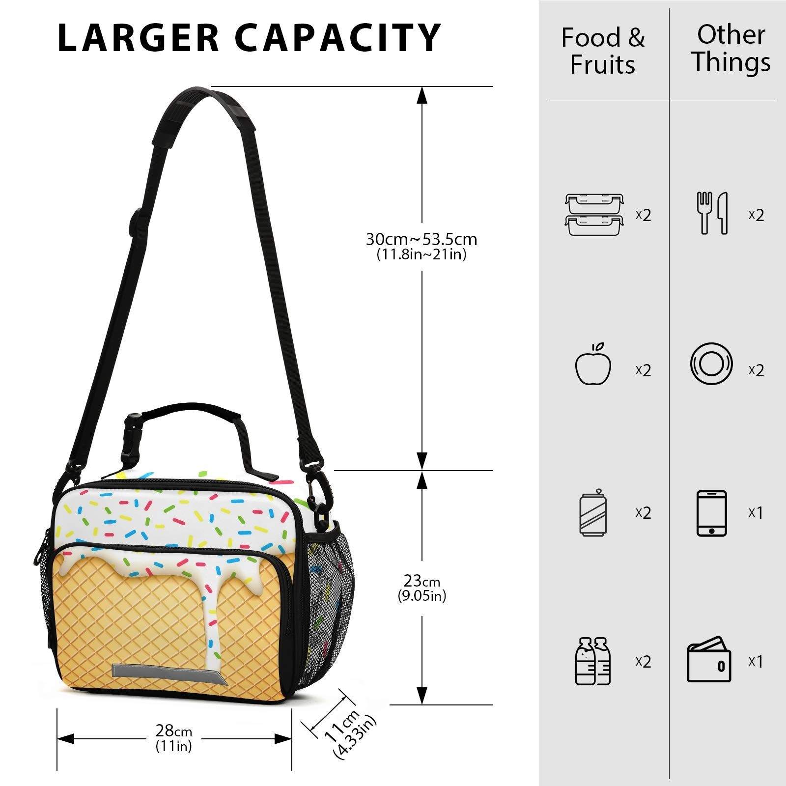 Blueangle Ice Cream Cone Lunch Bags for Women&Men, Shoulder Strap Lunch Box School Insulated Cooler Totes with Leakproof Lining