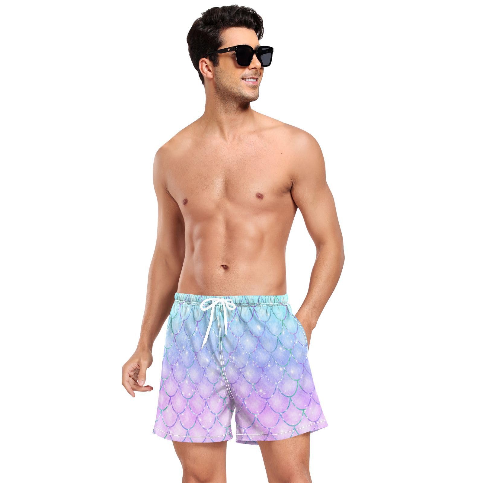 Blueangle Mermaid Mens Swim Trunks with Compression Liner 4.7" Inseam Quick Dry Bathing Suit Swimming Shorts(85)
