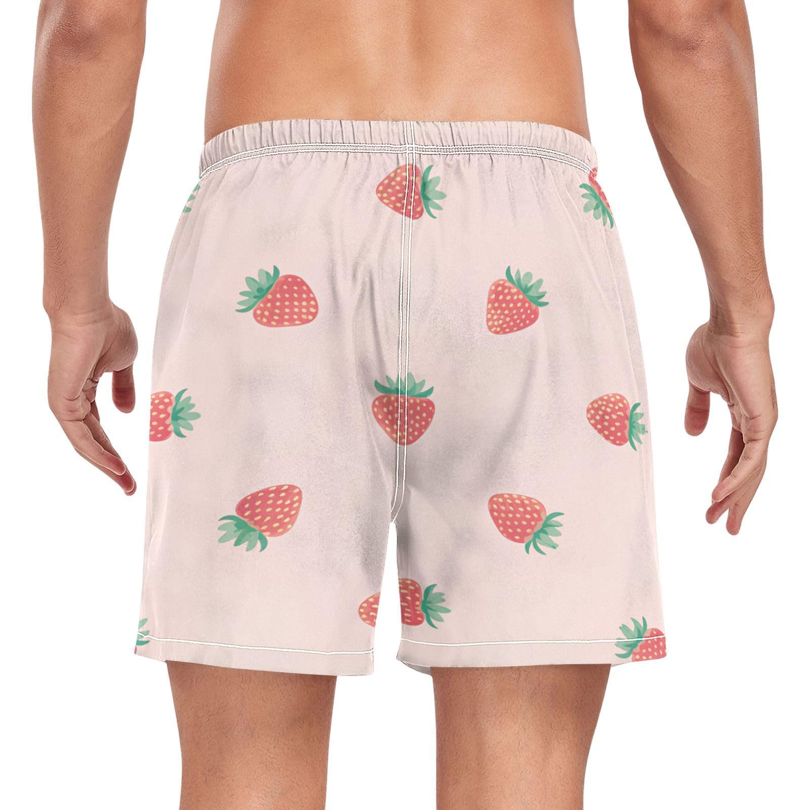 Blueangle Pink Strawberry Mens Swim Trunks with Compression Liner 4.7" Inseam Quick Dry Bathing Suit(808)