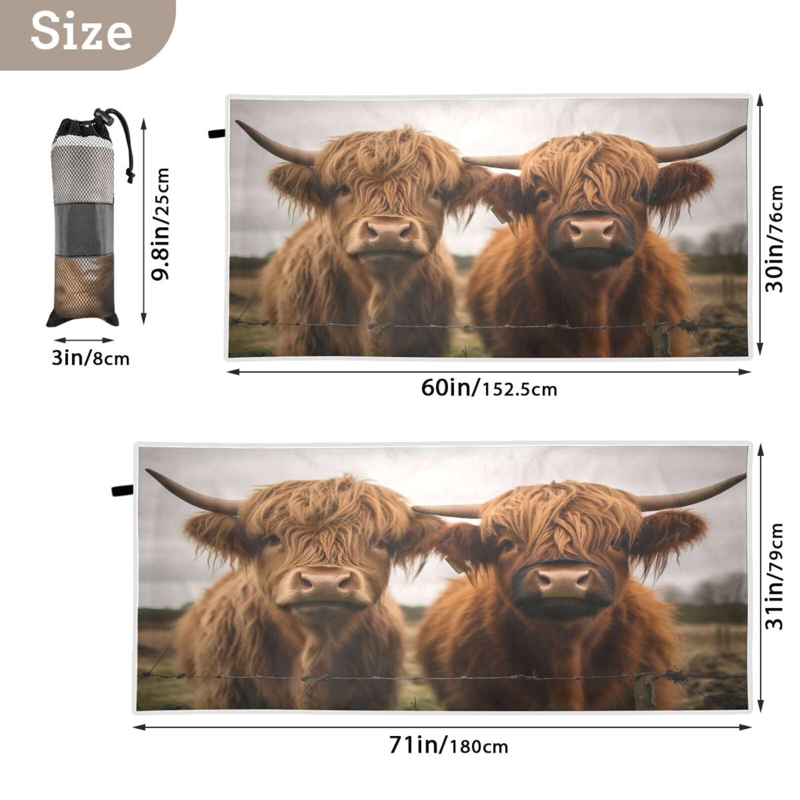 Blueangle Two Scottish Highlands Cow Beach Towel - Lightweight Compact Oversized Travel Towels - Super Absorbent Quick Dry Towel for Swimming Camping Holiday
