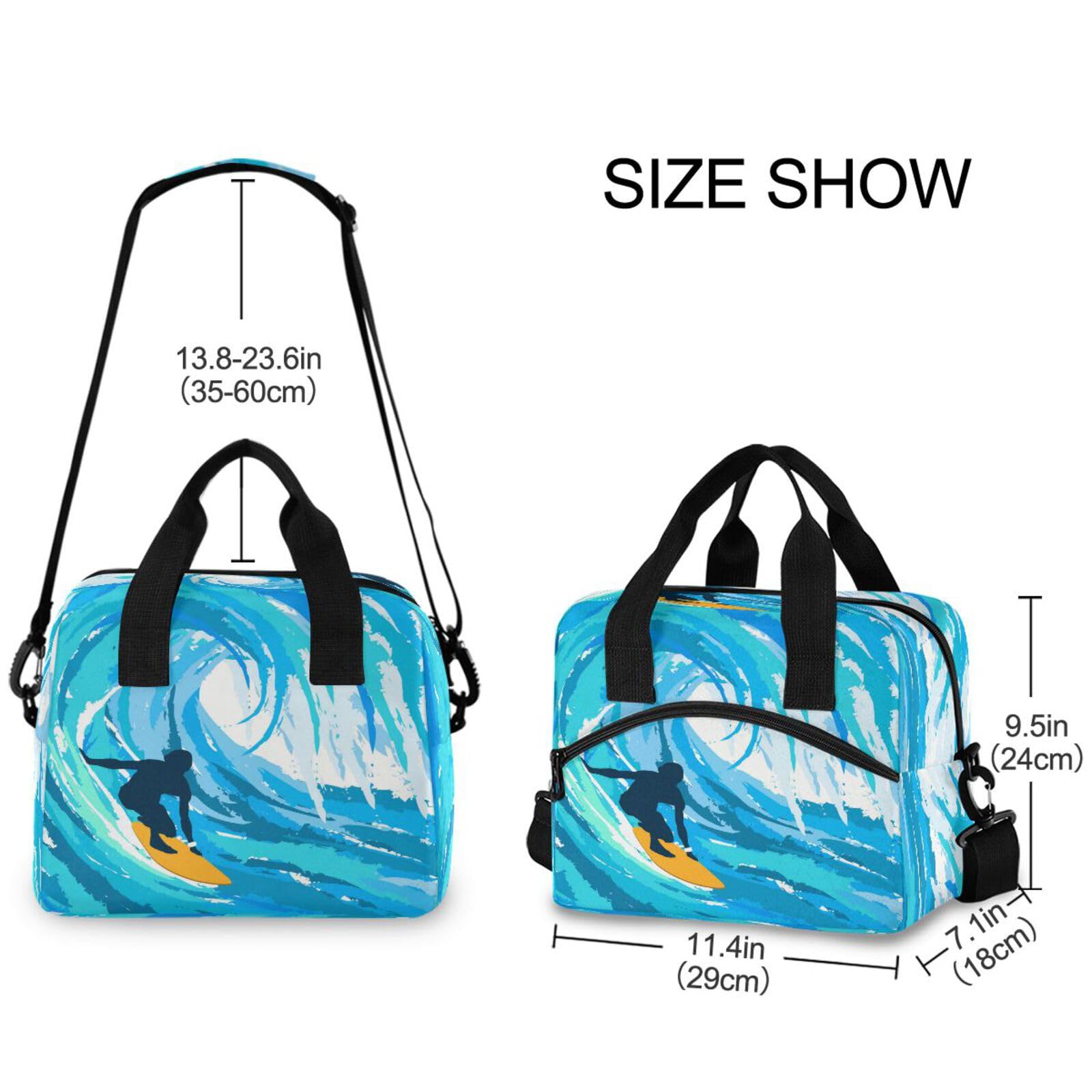 Blueangle Watercolor Surfing Print Insulated Lunch Bag with Detachable Shoulder Strap & Carry Handle, Eco-friendly Cooler Bag Tote Bag,Lunch Box for Men Women